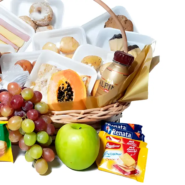 Embalagem: A cesta é enviada fechada e lacrada, não aberta como esta na foto, o mesmo recebe um laço decorativo e mensagem em envelope padrão.